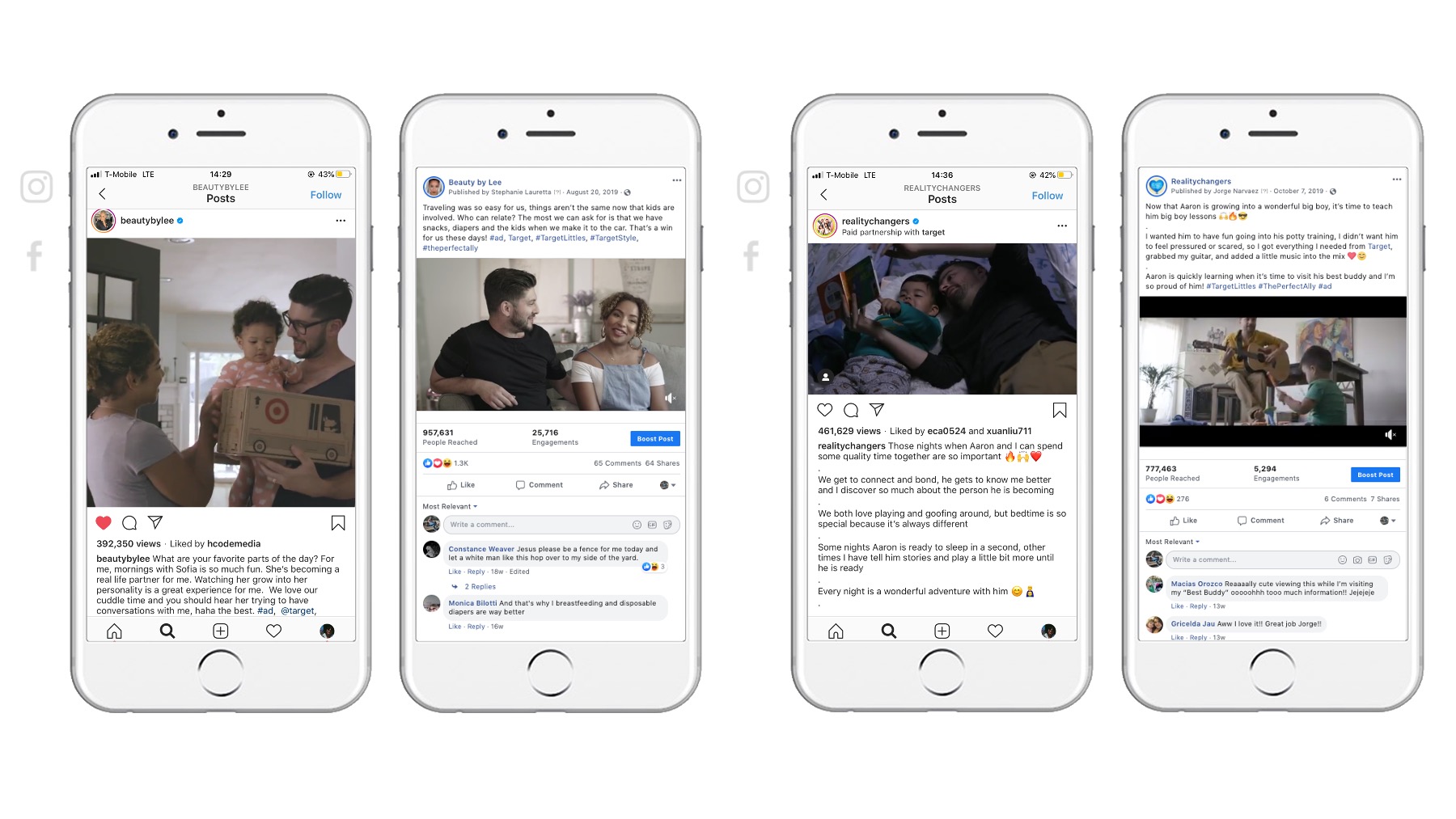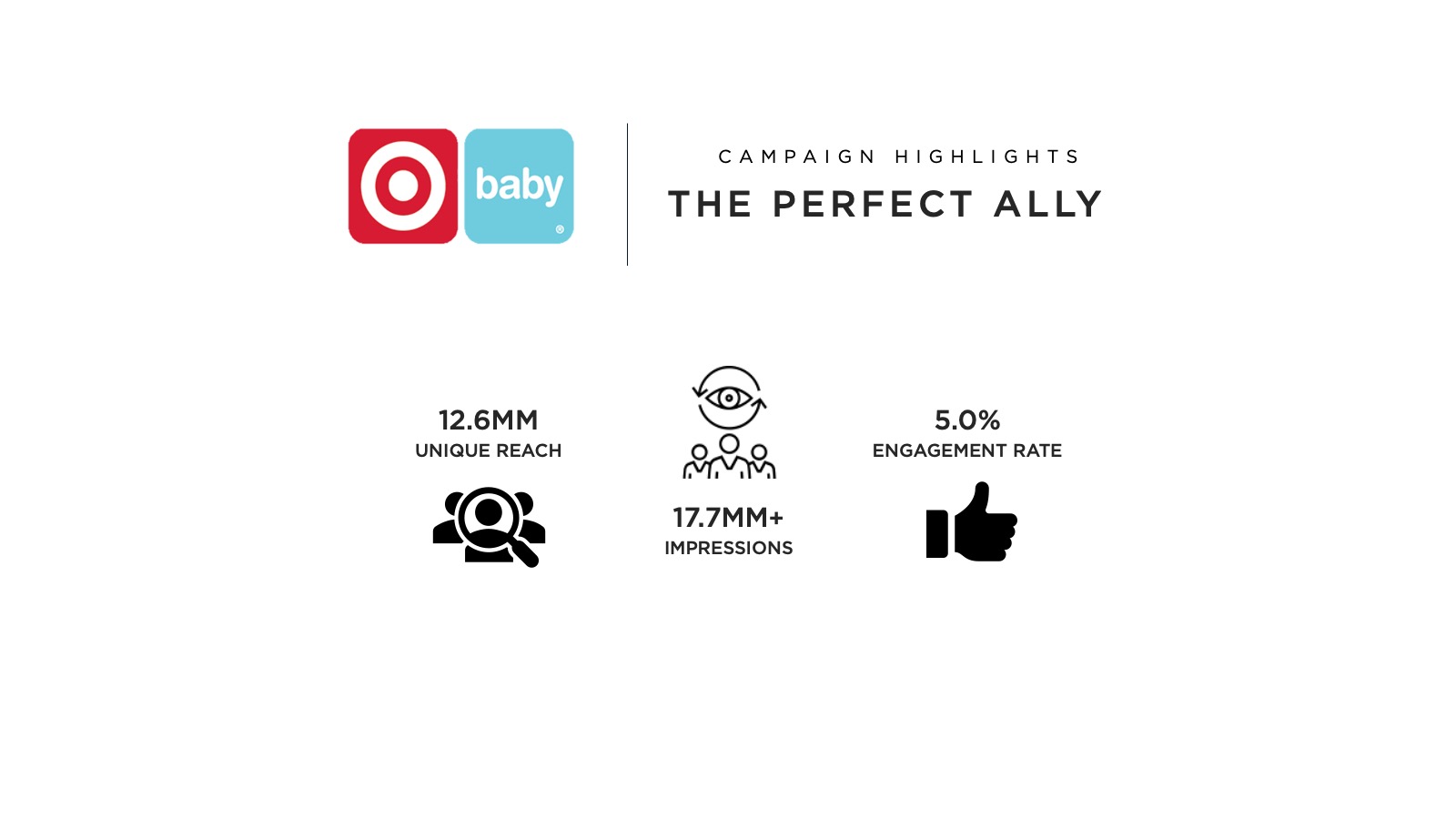 The Perfect Ally featured the everyday adventures of three Latine parents, highlighting how they navigated the stages of their journey with the support of their most reliable ally, Target Baby. Jacquie Saldana, Stephanie Lee, and Jorge Narvaez shared a glimpse into moments that define the experience of raising their beautiful families, emphasizing one or more of the following parenting milestones/stages: Sleep Solutions, Potty Training, Baby Registry, Travel. This social campaign ran from August to October, 2019, delivering outstanding results.